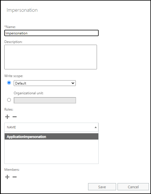 https://[your_exchange_server]/ecp/, replacing the [your_exchange_server] with your Exchange server. For example, https://workzone/ecp/. - On the permissions tab, select admin roles and click +.