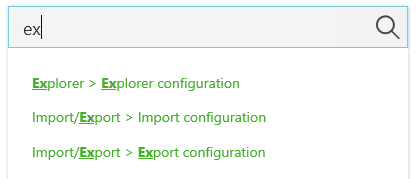 - Search: Start typing a search request in the search field, and the most relevant suggestions will appear. You can search for the WorkZone entities, including feature settings. Values defined by you are not available for searching.