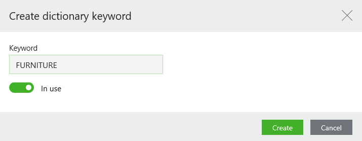 Create. The Create dictionary keyword dialog box opens.