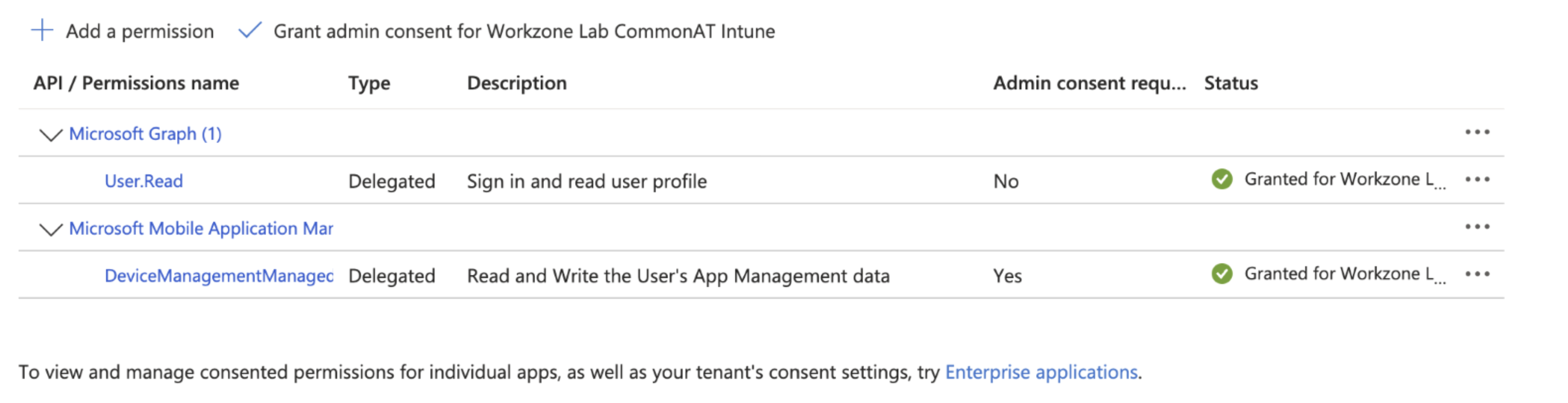 DeviceManagementManagedApps.ReadWrite. - Under My APIs > [name of your hosted web app] (for example, My APIs > KMDWorkZoneWebApp):