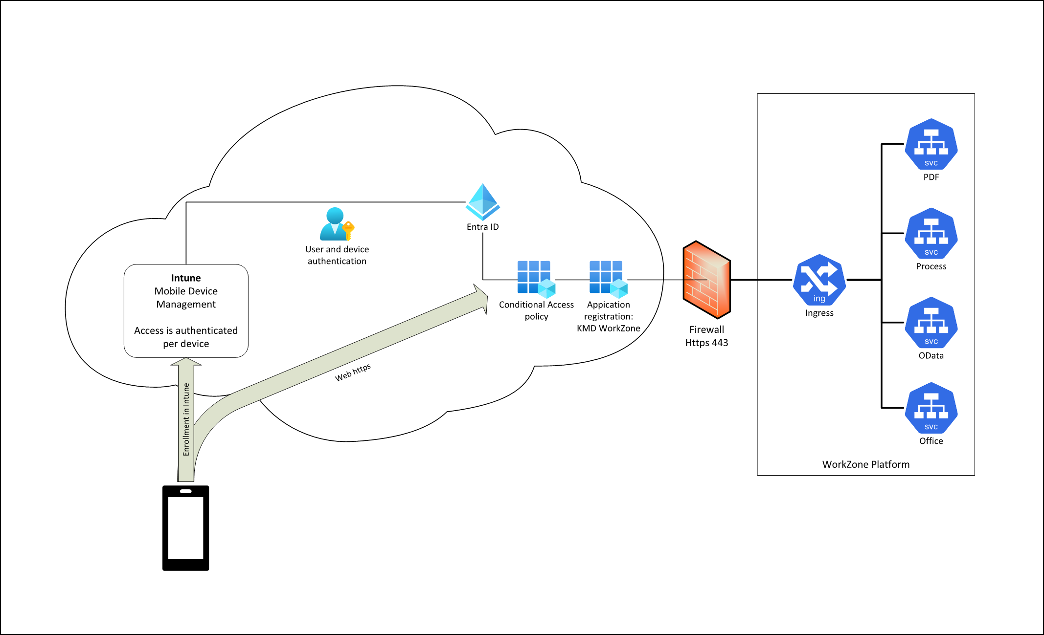 Some configuration of an organization's infrastructure actions must take place to allow WorkZone Mobile (Ny) access to on-premise WorkZone through Microsoft Enterprise Mobility Suite,