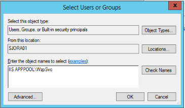 - In the Permissions dialog, click Add to add the private key, typically the IIS APPPOOL\WzpSvc user.
