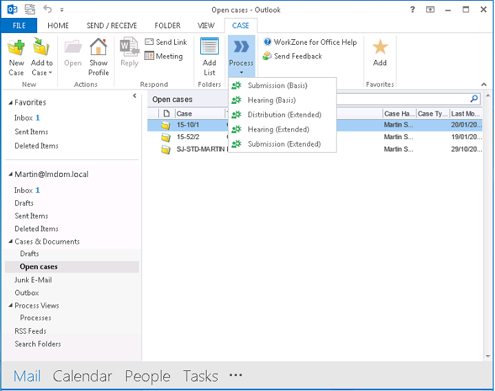 Du kan starte en ny proces fra Microsoft Outlook, Word, Excel eller Powerpoint, eller fra en sag eller et dokument i WorkZone Client.
