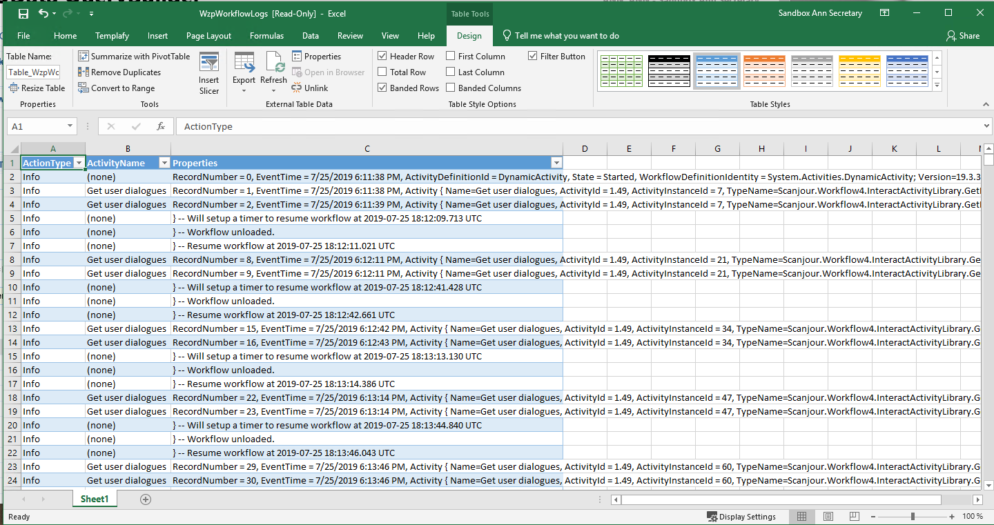 If you want to see the full log for a specific process, you can remove the filter on ActionType.