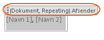 Dette er en anden måde at anvende indholdskontrolelementer. Hver sag eller dokument kan have flere parter med en bestemt rolle, f.eks, Sender eller Modtager. Hvis du vil udtrække oplysninger fra flere parter og indsætte dem i et indholdskontrolelement, skal du bruge et gentaget indholdskontrolelement.