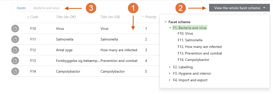 - Click View the whole facet scheme to view its tree structure (2);