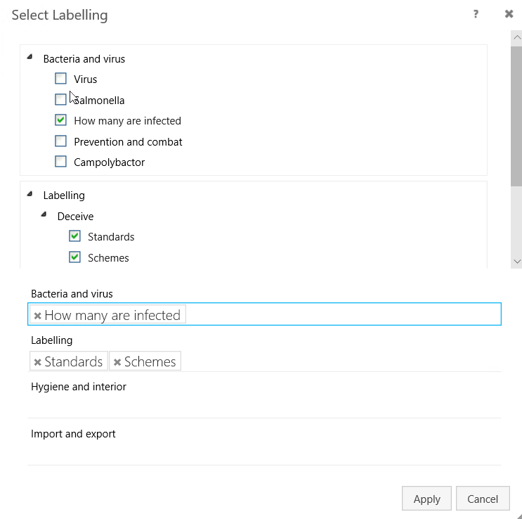 - Priority – Define the order of facets in the facet classification. You can enter an integer number starting from 1. A facet with priority 1 will be shown above other facets in the facet classification.Note: Priorities do not affect each other. For example, if you have five facets with priorities 1, 2, 3, 4, 5 and then you add a new facet with priority 1, then facet priorities will be 1, 1, 2, 3, 4, 5 (not 1, 2, 3, 4, 5, 6).