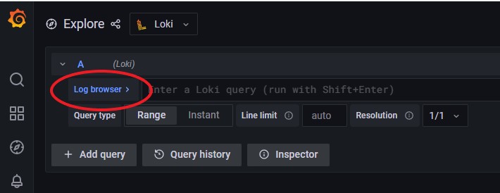 - To access the built-in query builder, on the main page, click the Log browser > button.