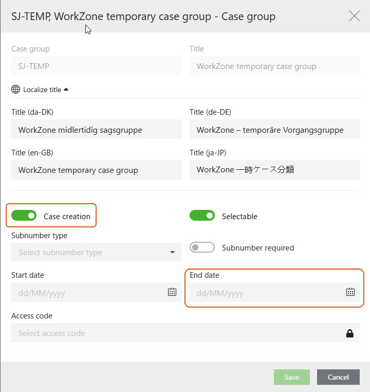 Edit the SJ_TEMP case group. Enable Case creation and remove any end date.