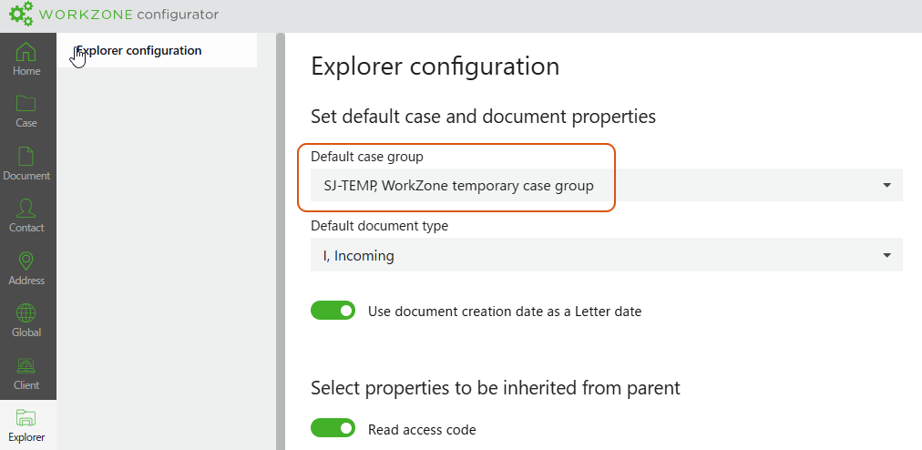 This error occurs if the SJ-TEMP case group does not exist or is not configured to allow case creation. WorkZone Process creates cases in the SJ-TEMP case group. The exact value for the SJ-TEMP case group is resolved by reading the DefaultFileClass_Value column in the WzExplorers entity. You can view and configure this setting in WorkZone Configurator > Explorer. SJ-TEMP is the default case group.