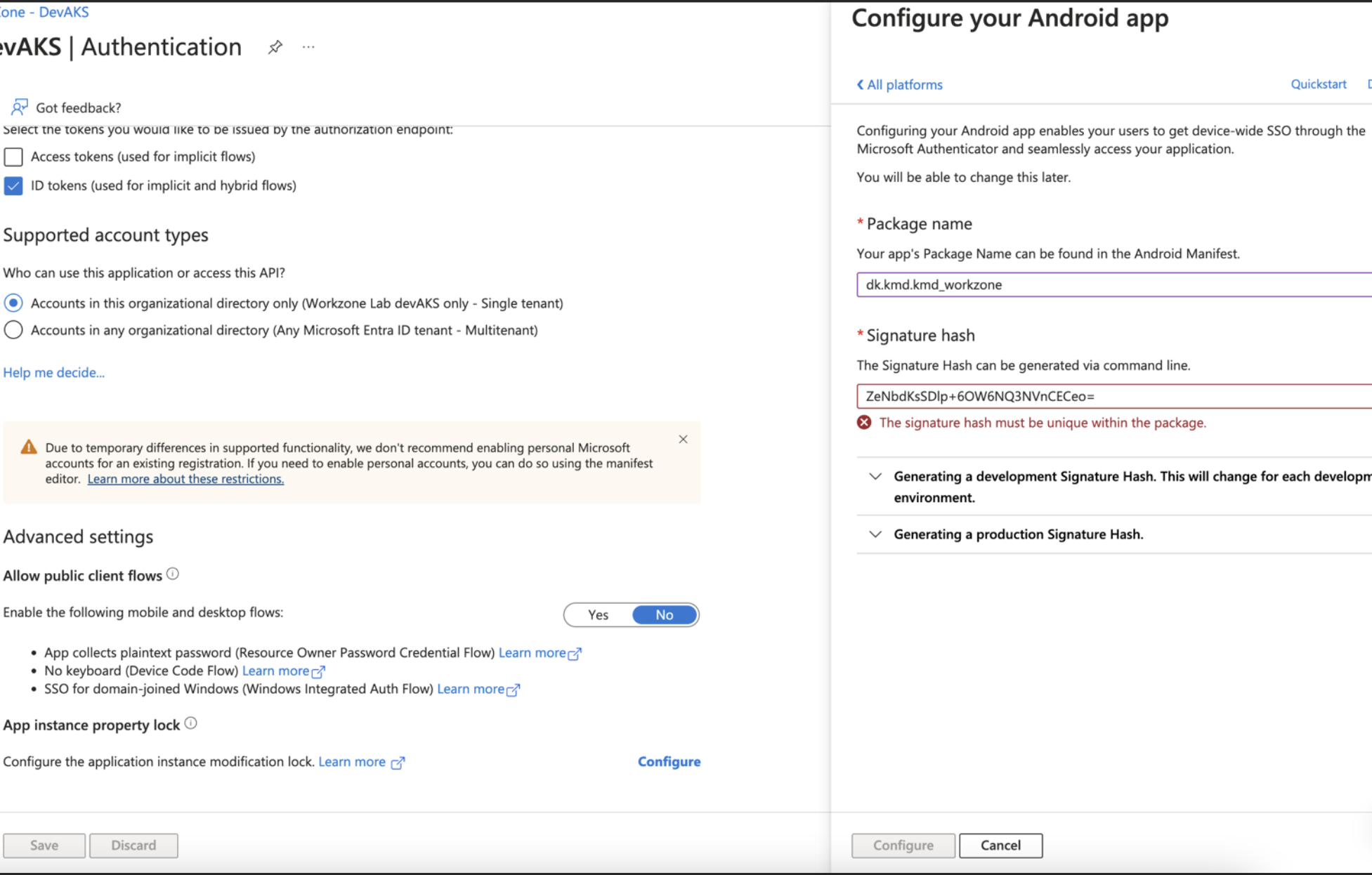 For Microsoft cloud environments, to authenticate logged-in user and retrieve the authentication token, you need to register the redirection URLs for your created and registered WorkZone Mobile (New) in the Azure portal.