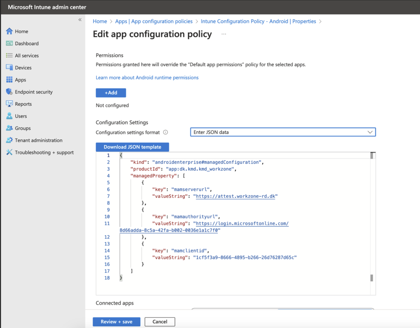 - Click Review + save.