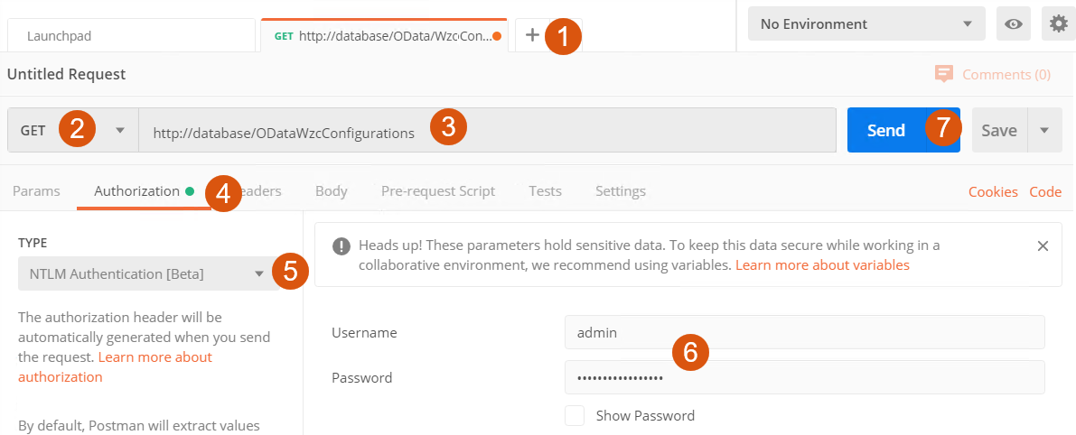 htts://<host>/OData/WzсConfigurations. - Click Authorization on the ribbon.