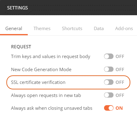 - Turn off the SSL certificate verification toggle button.