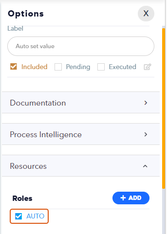 - If you want the activity to be executed automatically, select the role named AUTO.