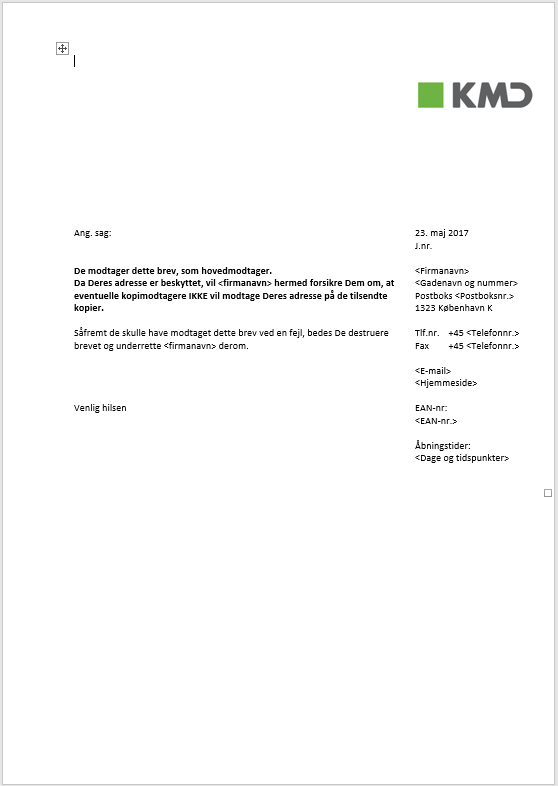 The reason for also leaving out the address information in the letter to the recipient is to minimize the risk of recipients questioning if the letters that are sent to the copy recipients provide information that makes it possible to locate the recipient.