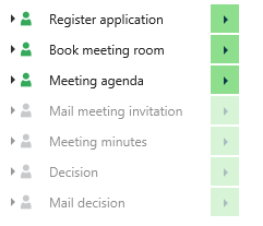 An activity list may consist of activities that are dependent of each other and therefore must be carried out in a specific order, for example, activities connected to a hiring process such as registration of applications, booking interviews, follow-up meetings, and so on. An activity list may also consist of activities that are unordered and independent of each other, for example, a check list with items that need to be followed up on in no particular order.