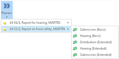 Process on the ribbon. - Click on the type of process you want to start, for example, Submission (Basis).