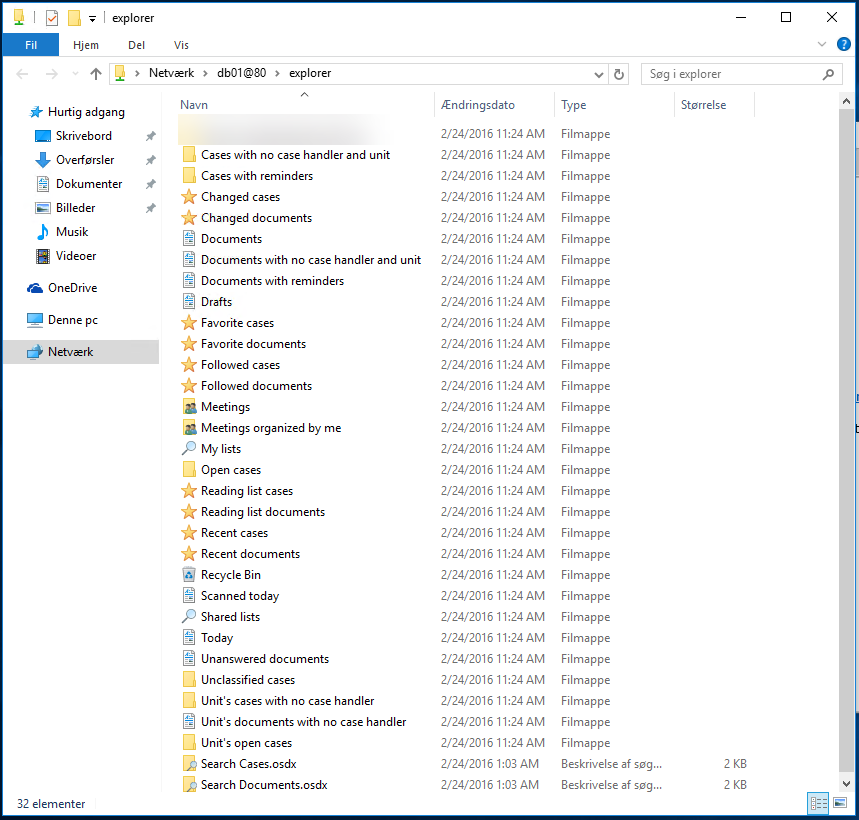 The folders contain the cases and documents that you have marked as favorites in WorkZone Client or dragged and dropped to the favorite folders in File Explorer. See Add or remove cases to the Favorite cases folder and Add or remove documents in the Favorite documents folder. |