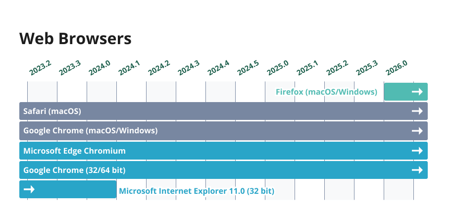 The diagram below provides an overview of which browsers a specific WorkZone release supports.