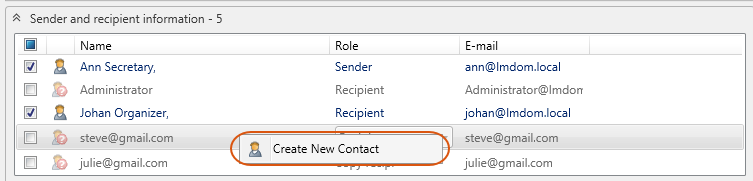 If the Outlook item contains an unknown contact (that is, a contact with an email address that does not match any existing contact), you can save this contact as a new contact.